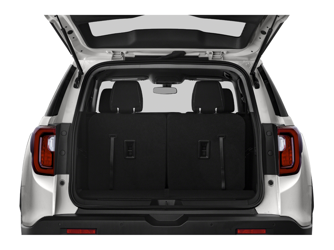 - Straps in the back of the third row seat fold the third row seats from the rear cargo area