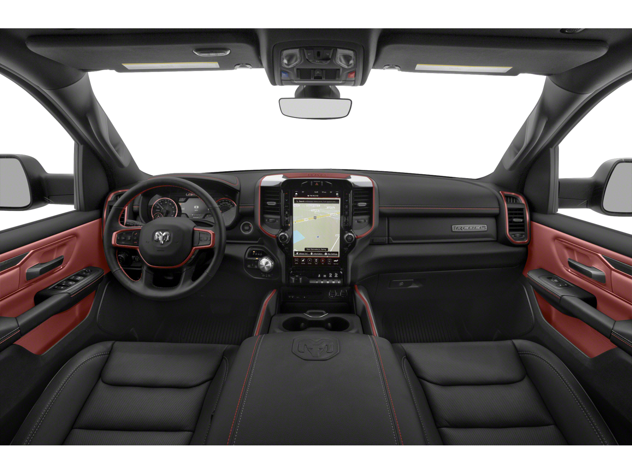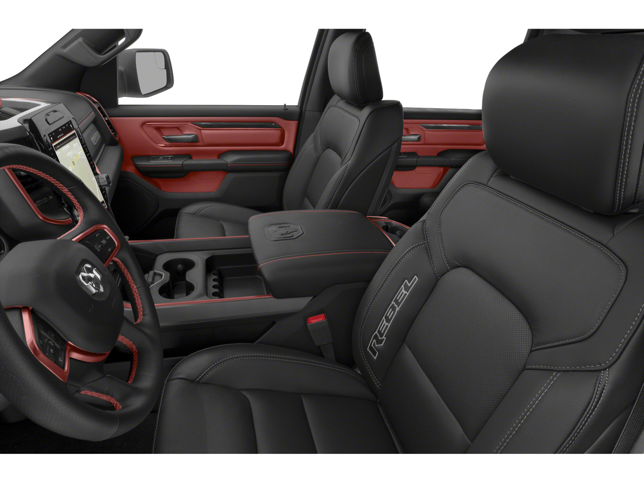 Elevate your driving experience with the Rebel's premium amenities, including the Uconnect 4 infotainment system with an 8.4-inch display, SiriusXM satellite radio, and a premium audio system. The luxurious leather-trimmed bucket seats with power adjustability and lumbar support ensure maximum comfort, while the MOPAR spray-in bedliner and black tubular side steps add a touch of rugged style.