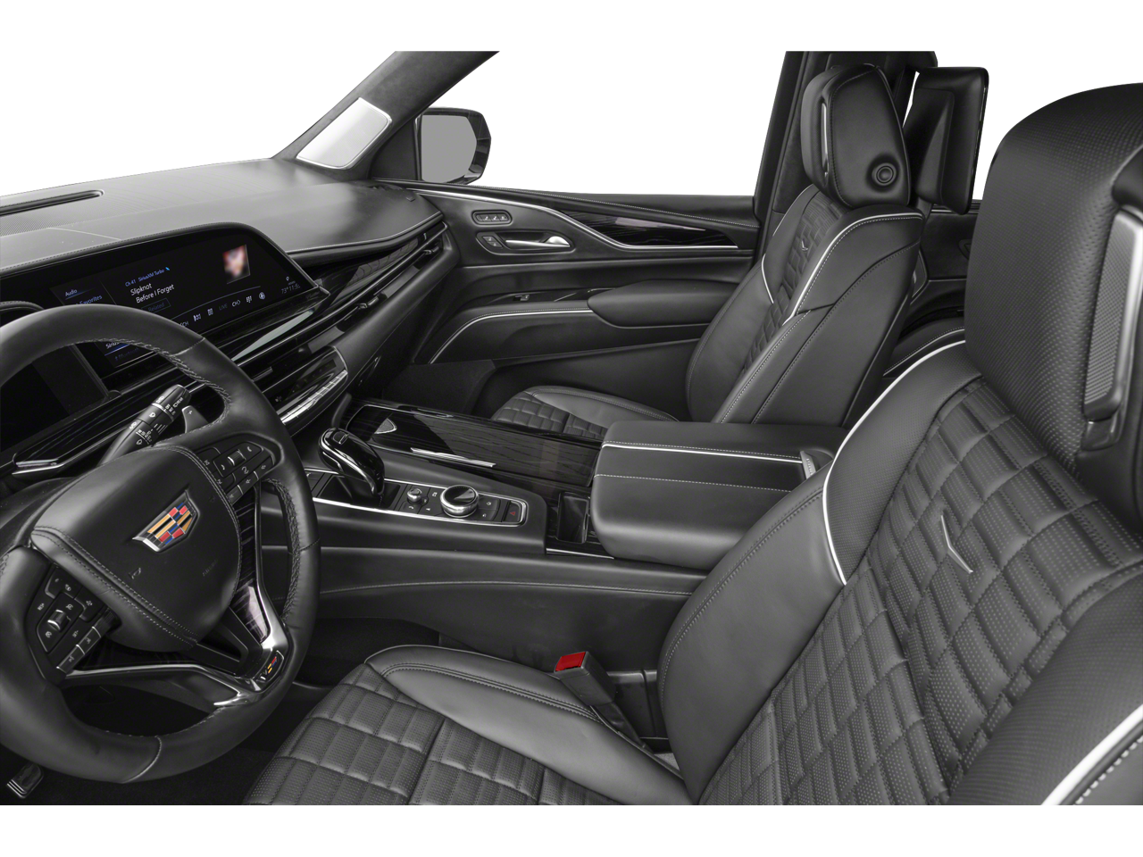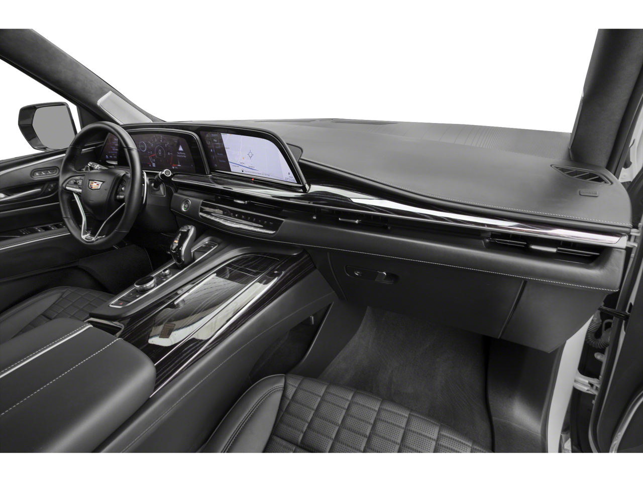 Step inside the Escalade V-Series, and you'll be enveloped in a world of unparalleled luxury. The Platinum Interior Trim, combined with the Heated and Ventilated front seats and the Power Lumbar Massage Driver and Passenger Seats, create a truly indulgent driving experience. The Reconfigurable Full-Color Head-Up Display and the Wireless Apple CarPlay/Android Auto integration ensure you stay connected and in control, while the Rear Camera Mirror and Trailer Side Blind Zone Alert provide enhanced visibility and safety.