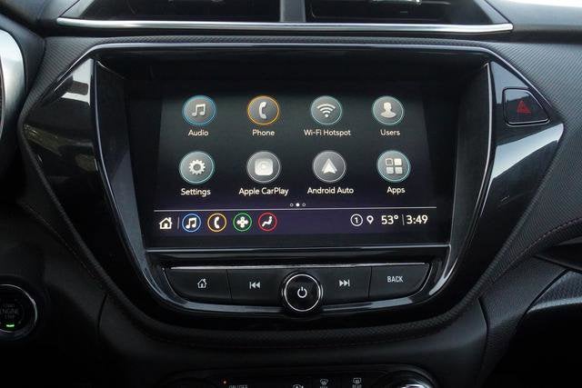 - Audio system, Chevrolet Infotainment 3 Plus system 8" diagonal HD color touchscreen, AM/FM stereo, Bluetooth® audio streaming for 2 active devices, Apple CarPlay and Android Auto capable, voice recognition, in-vehicle apps, cloud connected personalization for select infotainment and vehicle settings.
