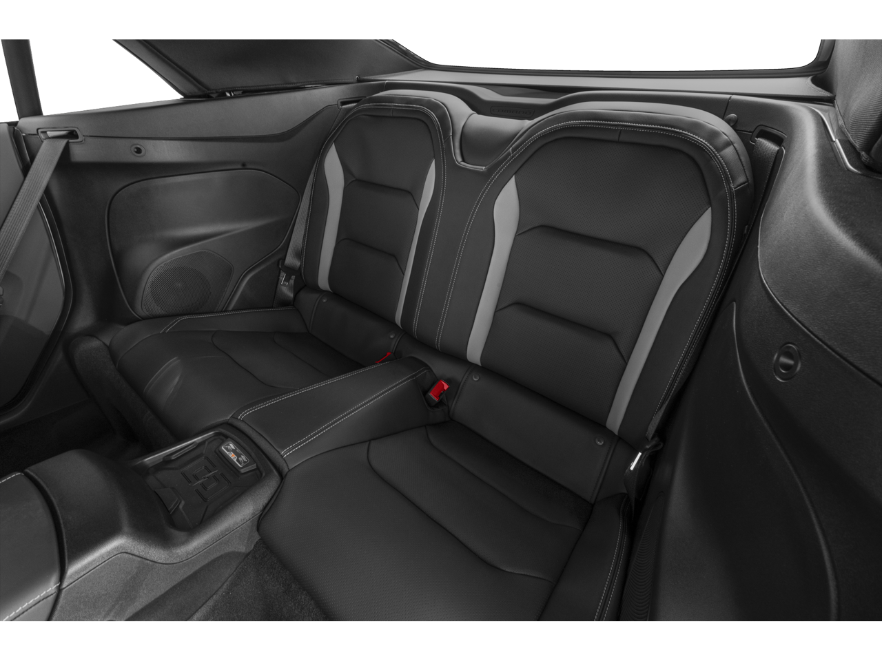 - Black interior with Adrenaline Red front seat inserts, door inserts and stitching on front seats, doors, steering wheel, shifter and center console