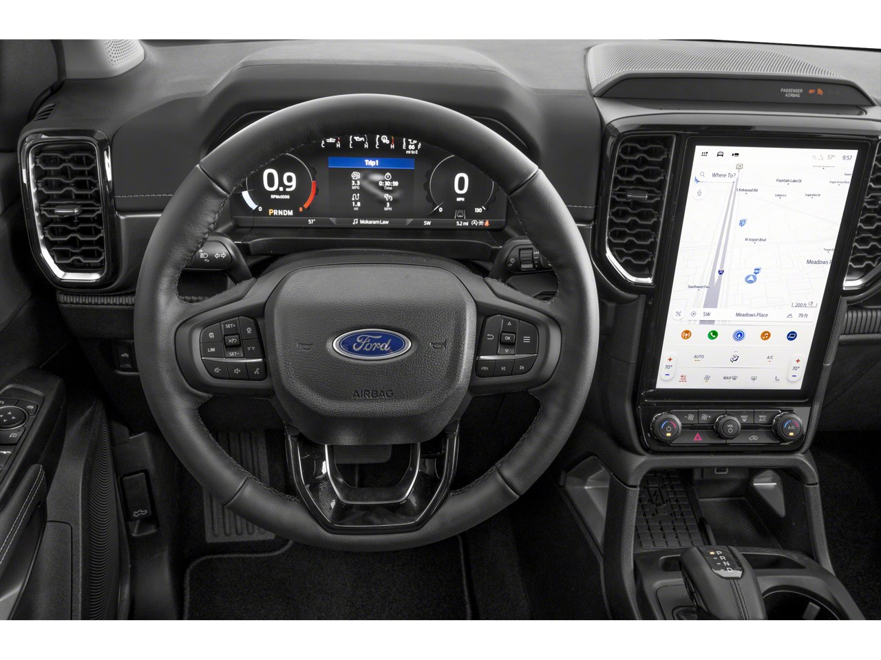 Inside, the Ranger Lariat offers a well-appointed and comfortable cabin, featuring leather-trimmed front heated bucket seats, a premium B&O sound system, and a suite of advanced technology and connectivity features to keep you entertained and informed on the go.
