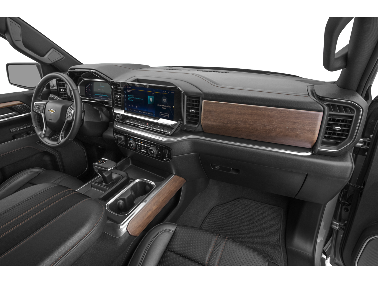 The exterior of this Silverado 1500 High Country is finished in a sleek Black color, complemented by a host of premium styling cues, including Chrome Assist Steps, LED Cargo Area Lighting, and 22-inch Painted Aluminum Wheels with Chrome Inserts. The interior is outfitted with luxurious Perforated Leather Seat Trim, Heated and Ventilated Front Seats, a Heated Steering Wheel, and a 12.3-inch Multicolor Reconfigurable Digital Display.